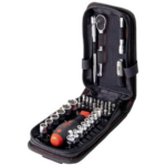 Posjedovanje pravog alata za korištenje koje nije na dohvat ruke znači nepotrebno vrijeme, posebno u mobilnoj upotrebi. Sa 40-delnim nasadnim ključem i kompletom bitova, 1/4″ se lako može izvesti zahvaljujući praktičnom zavrtnju vrećice za pojas sa samo jednom ručkom. Sa setom najčešćih umetaka za nasadni ključ od 1/4″ u veličinama od 4 – 14 mm različitih nastavki, držača za bitove, ključa sa čegrtaljkom, dva nastavka, kardanskog zgloba i adaptera za nasadni ključ 1/4″ korisnik je dobro opremljen za montažne i montažne radove.