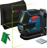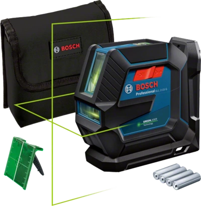 Laserski nivelir GLL 2-15 G Professional spreman za gradilište jednostavan je način za dobivanje točnih rezultata. Omogućava usmjerenost na zadatke zahvaljujući izdržljivom dizajnu, s gumenim kućištem za veću zaštitu utorenih stakala i s klasom zaštite od prašine i prskanja vode IP 64. Prekidač za uključivanje/isključivanje i tipkovnica s jednim gumbom omogućuju jednostavnu upotrebu. Okomite i vodoravne zelene laserske linije povećavaju vidljivost u okruženjima s jarkim svjetlom.